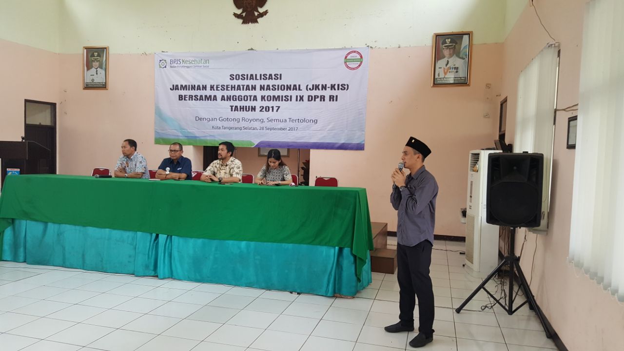 Sosialisasi program JKN – KIS dilaksanakan di Aula Kantor Kecamatan Serpong Utara bersama Anggota DPR RI Marinus Gea, SE., M.Ak (Dapil Banten III) bekerjasama dengan BPJS Kota Tangerang, Kamis (28/9/2017).