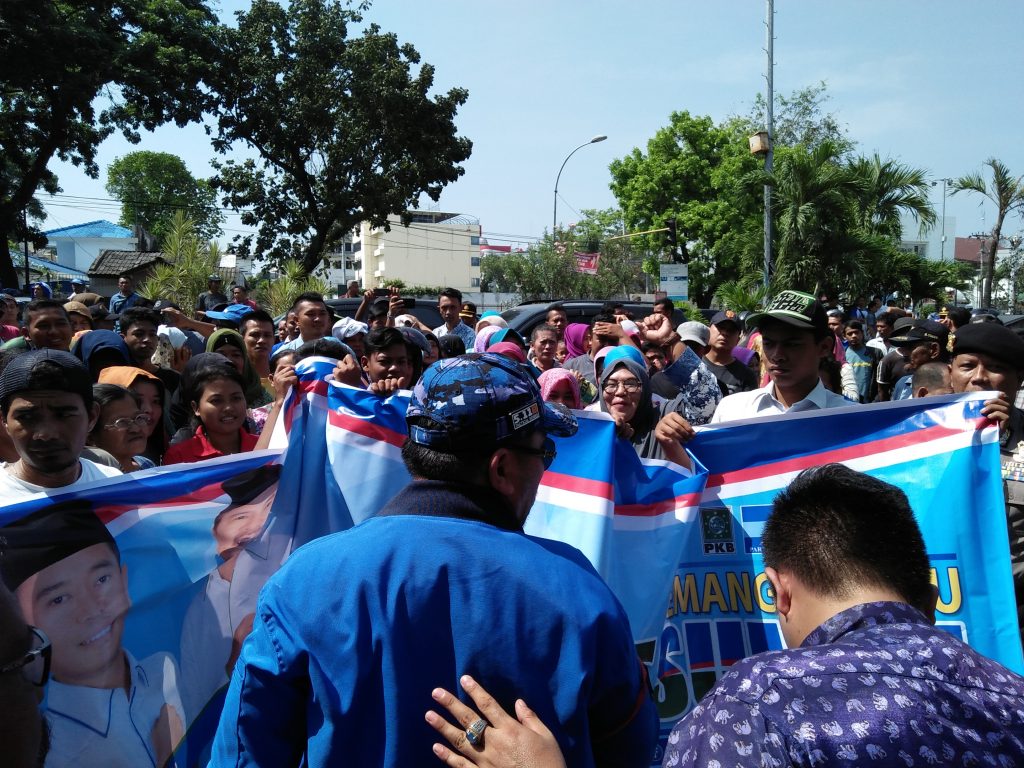 Suasana di luar kantor Bawaslu Sumut. (foto: ingot simangunsong)