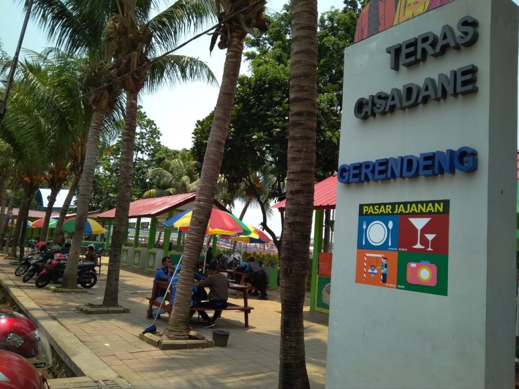 Rendi Geovani, Suheri Ahmad dan Faisal sebagai konseptor pembuatan Pasar Jajan Teras Cisadane menambahkan, karena lokasinya berada di bantaran maka ditambahkan fasilitas bermain bagi anak.