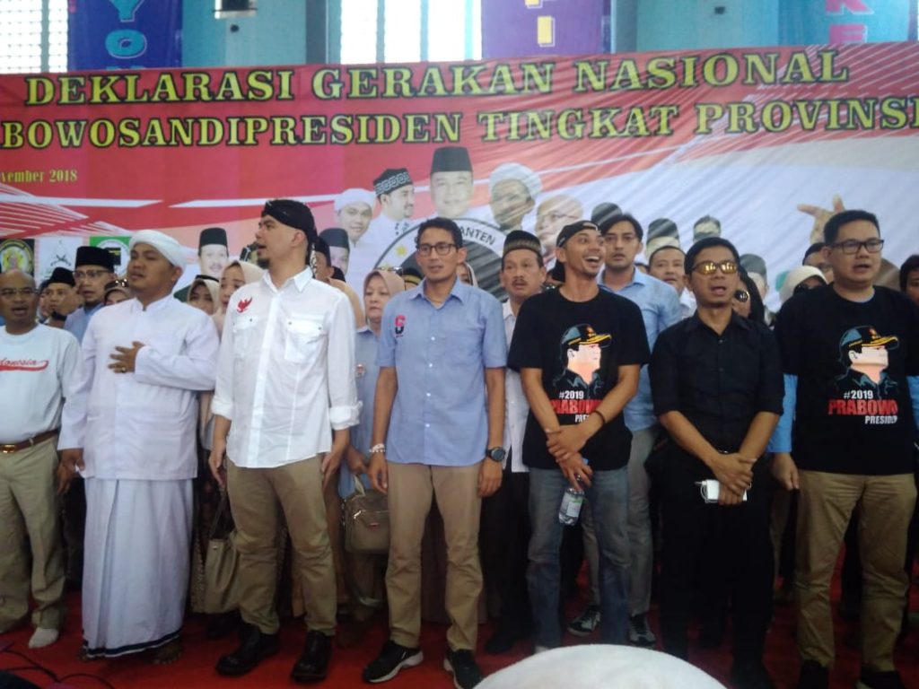 Kota Tangerang – Calon Wakil Presiden (Cawapres) nomor urut dua, Sandiaga Salahuddin Uno hadir dalam acara Deklarasi Gerakan Nasional #2019PrabowoSandiPresiden Tingkat Provinsi Banten yang berlangsung di GOR KotaTangerang, Jum’at (9/11/2018).