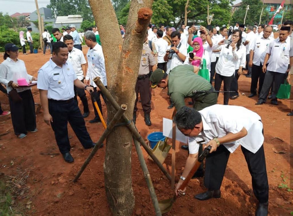 Kota Tangerang – Walikota Tangerang, Arief R Wismansyah beserta Camat Neglasari, Ubaidillah Anshar dan seluruh jajaran melakukan aksi penanaman pohon di Alun-alun Kedaung Wetan, Rabu (5/12/2018).