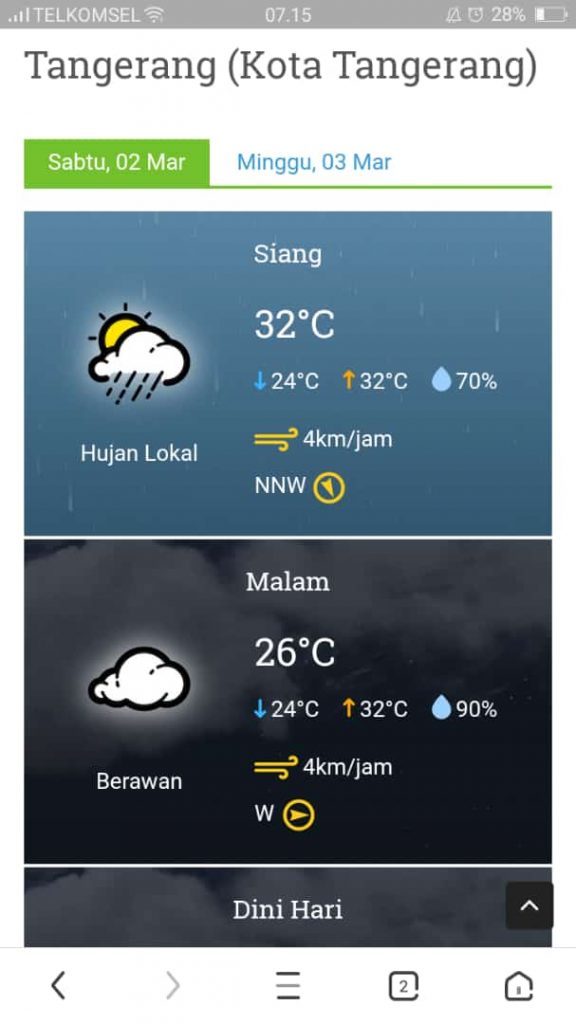 Sekadar diketahui hujan lokal juga berpotensi terjadi di Kota Tangerang pada Sabtu (2/3/2019) siang dan minggu (3/3/2019) malam. (ger/nji)