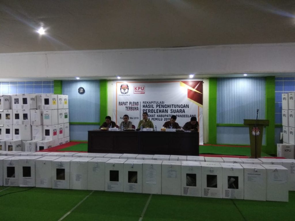 Kabupaten Pandeglang – Rapat pleno terbuka rekapitulasi suara Pemilu 2019 digelar KPU Kabupaten Pandeglang, di CAS Waterpark, Cikole, Kamis (2/5/2019).