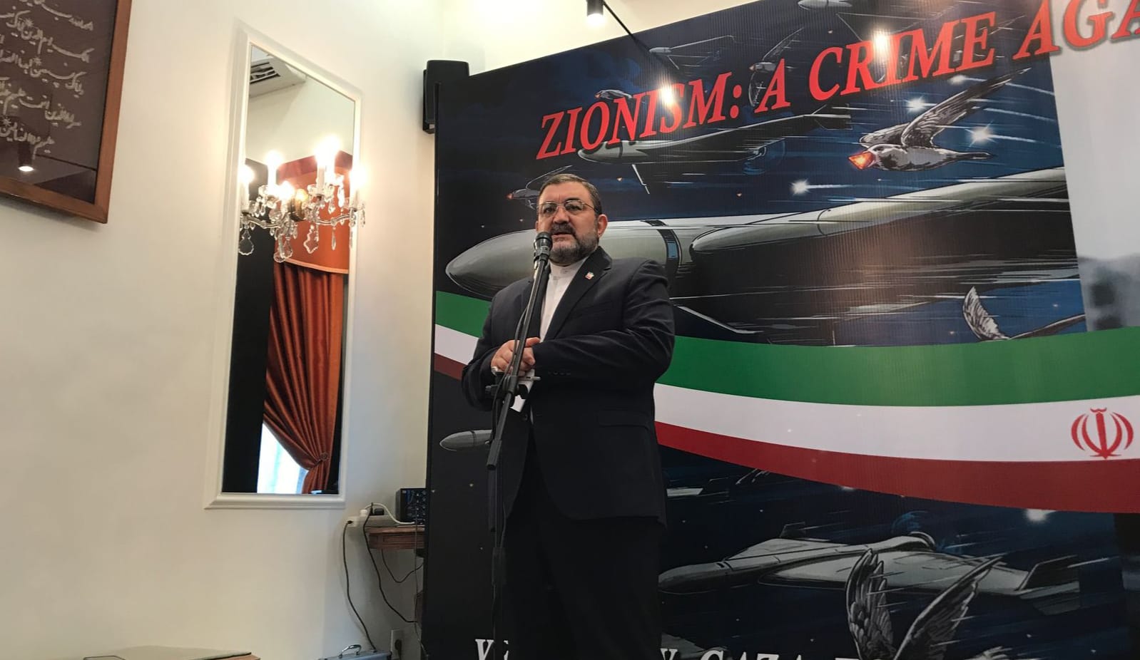 Dubes Iran untuk Indonesia, Mohammad Boroujerdi saat konferensi pers di kawasan Menteng, Jakarta Pusat, Selasa (17/6/2025). (Ilham F/Suaranusantara).