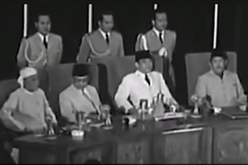 Presiden Soekarno (duduk-ketiga dari kiri) dalam konferensi Asia-Afrika menyuarakan dukungannya terhadap perjuangan Palestina (Youtube kasih Palestina/tangkapan layar)