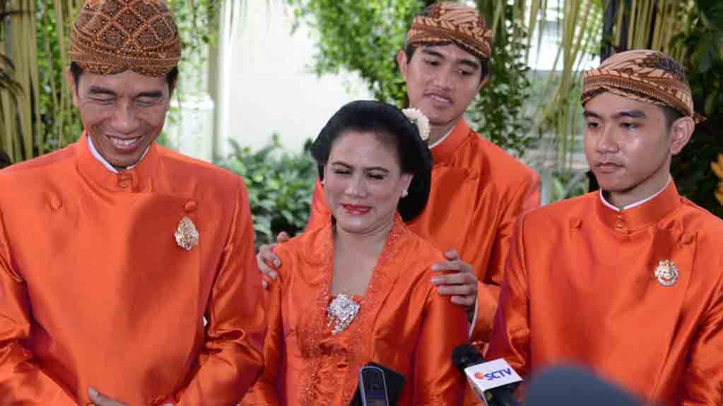 “Ya relatif lah ya yang namanya sederhana. Wong kita ini juga punya hajatan di kampung, ya kan. Gedung juga gedung sendiri. Catering juga sendiri, panitia juga sendiri,” ujar Presiden sambil menunjuk ke arah putranya Gibran Rakabuming.