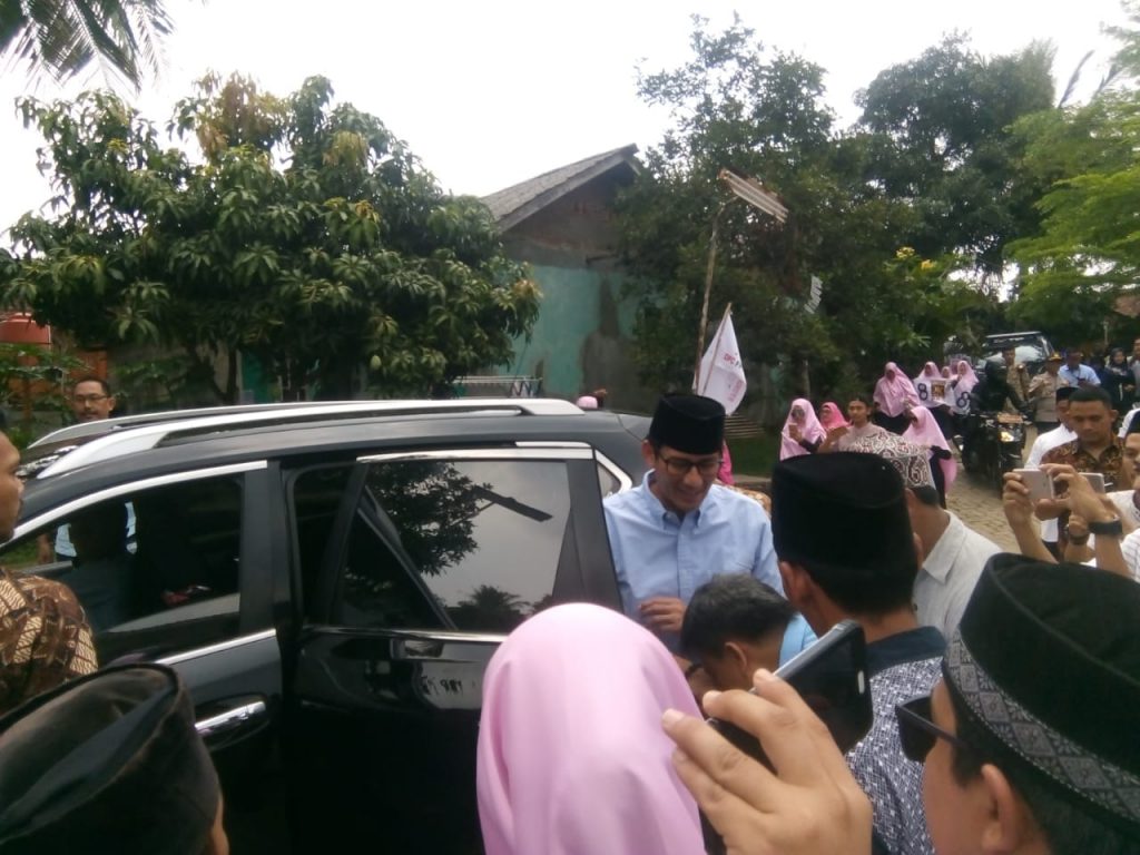 Kabupaten Tangerang – Calon Wakil Presiden nomor urut 2, Sandiaga Salahudin Uno mengunjungi Usaha Kecil Menengah (UKM) Peci Bambu di Kecamatan Panongan, Kabupaten Tangerang, Kamis (1/11/2018).