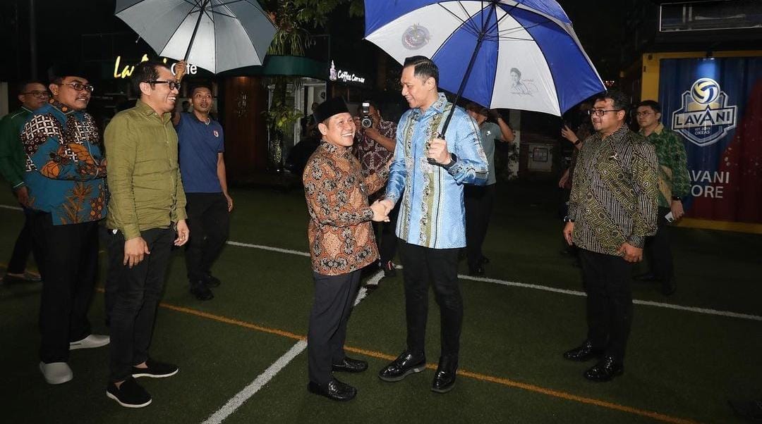 AHY Payungi Cak Imin Saat tiba di Cikeas// SS IG AHY