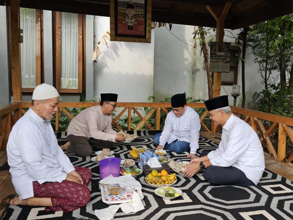 Suaranusantara.com – Calon presiden (Capres) yang diusung PDI Perjuangan, Ganjar Pranowo bersilahturahmi dengan tokoh masyarakat Banten K.H. Embay Mulya Syarief pada Minggu (28/5/2023). Dalam kunjungan ini Ganjar didampingi oleh Ketua Tim Koordinasi Relawan Ganjar Pranowo for President 2024, Ahmad Basarah.