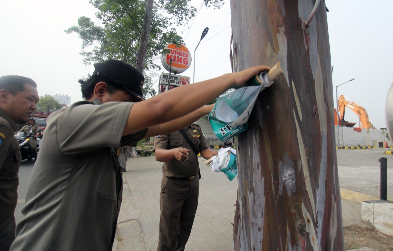 SuaraNusantara.com – Ratusan alat peraga kampanye yang terpasang di pohon pinggir jalan ditertibkan Satuan Polisi Pamong Praja (Satpol PP) Kota Tangerang.