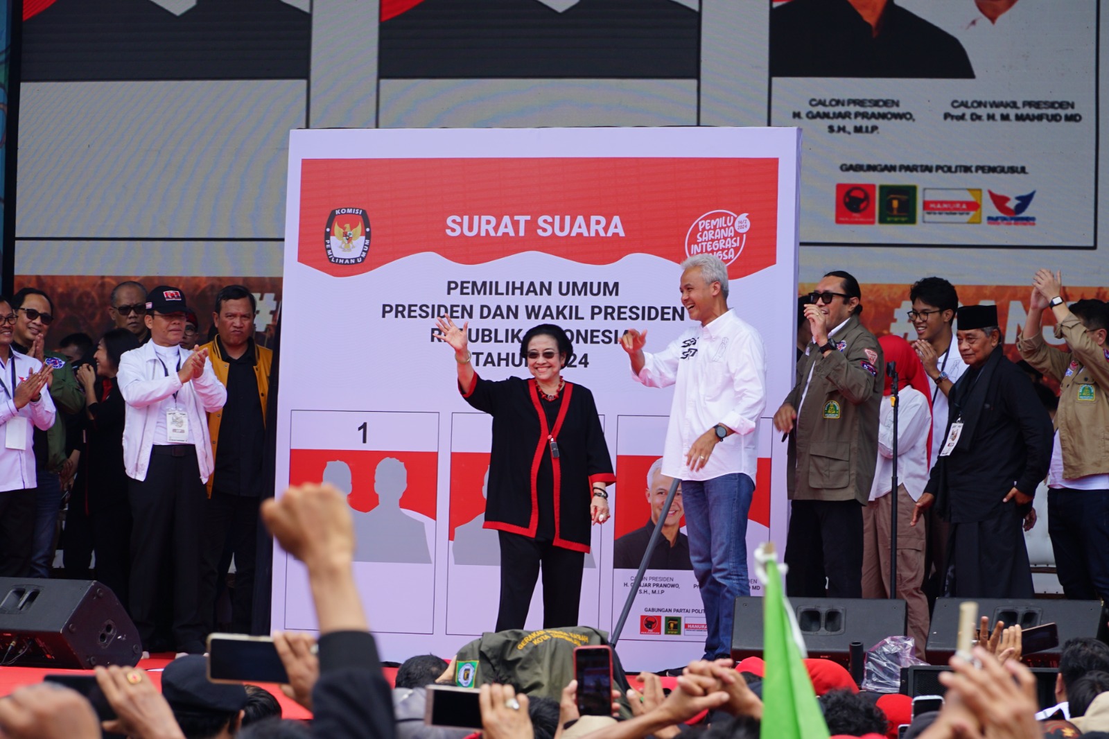 “Ganjar-Mahfud punya komitmen itu untuk kami laksanakan bersama. Maka, seluruh pendukung di Jawa Barat, mari satukan kekuatan, kita ciptakan kemenangan hattrick (tiga kali berturut-turut), dan kekuatan itu ada di Anda semua,” tegas Ganjar.