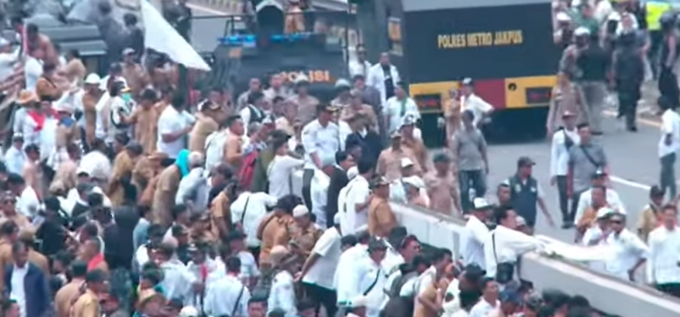 Suaranusantara.com- Massa demonstran dari Asosiasi Pemerintah Desa Seluruh Indonesia (Apdesi) berupaya merusak pagar Gedung DPR RI di Senayan, Jakarta, pada Rabu (31/1/2024).