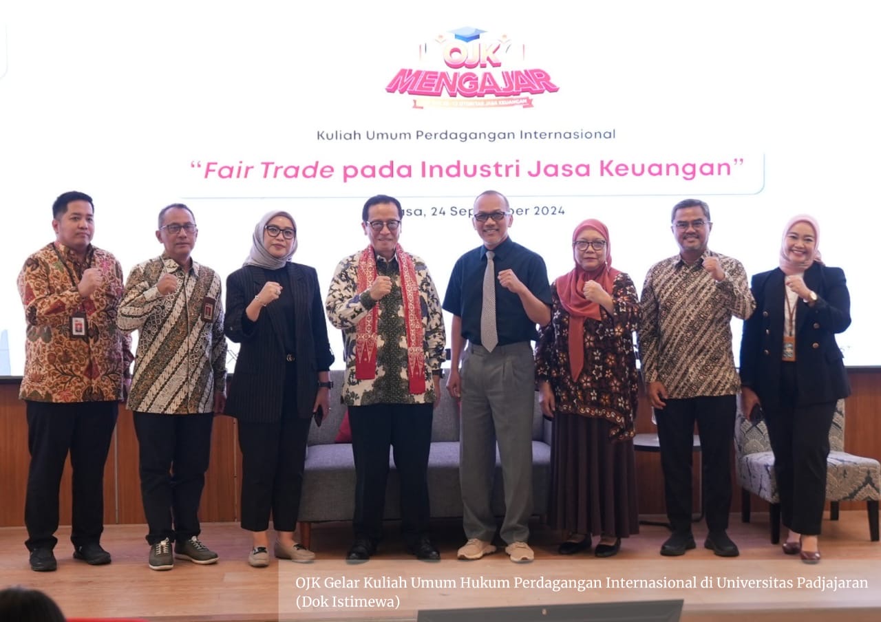 Suaranusantara.com – OJK mengadakan kegiatan Mengajar menyambut Hari Ulang Tahun (HUT) OJK ke-13 dalam bentuk Kuliah Umum Hukum Perdagangan Internasional dengan tema “Fair Trade pada Industri Jasa Keuangan” di Fakultas Hukum Universitas Padjajaran, Sumedang, Selasa (24/9/2024).