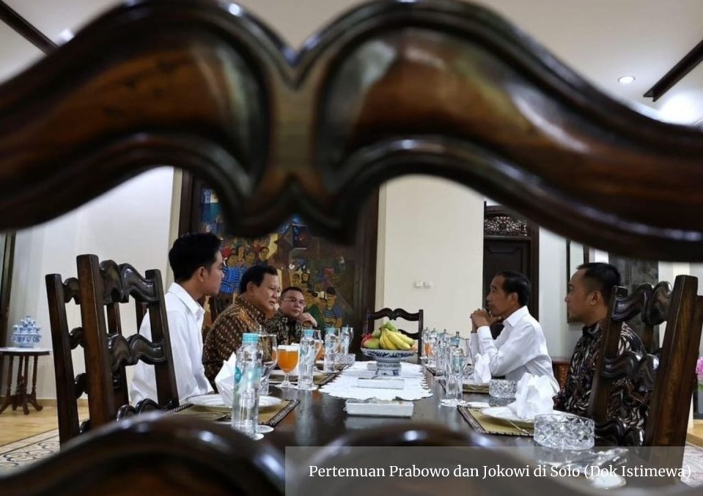 Suaranusantara.com – Presiden terpilih Prabowo Subianto dan Wakil Presiden Terpilih Gibran Rakabuming Raka melakukan pertemuan dengan Presiden Joko Widodo (Jokowi) di kediaman pribadinya di Sumber, Banjarsari, Solo, Munggu (13/10/2024).