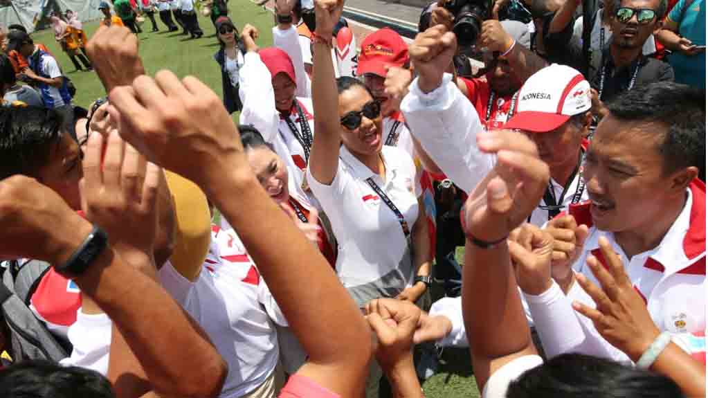 Usai pertandingan, Menpora Imam Nahrawi turun ke lapangan memberikan semangat kepada pemain. Menurut Menpora perjuangan atlet Indonesia sudah luar biasa. “Tetap semangat ya dan jangan gampang menyerah. Perjuangan atlet Indonesia sudah luar biasa dan saya bangga dengan mereka. Apapun yang terjadi di lapangan para atlet harus tetap berjuang maksimal,” kata Menpora.