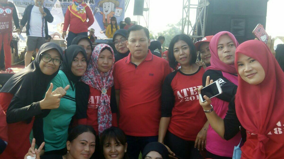 Kabupaten Tangerang – Camat Teluknaga, Supriyadi ikut serta dalam senam sehat bersama masyarakat yang digelar oleh Panitia Pemilihan Kecamatan (PPK) Teluknaga, Selasa (1/5/2018).