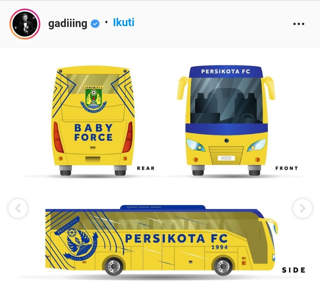 Bahkan, pada postingan instagram milik @gadiiing pada tanggal 4 juli 2021, terpampang desain bus Persikota dengan caption “Ide awal untuk bus @persikotafc1994 gmana Lads ??!! Yang mau ikutan design bole juga tag ke saya….. let’s build e new bumblebee 😊”.
